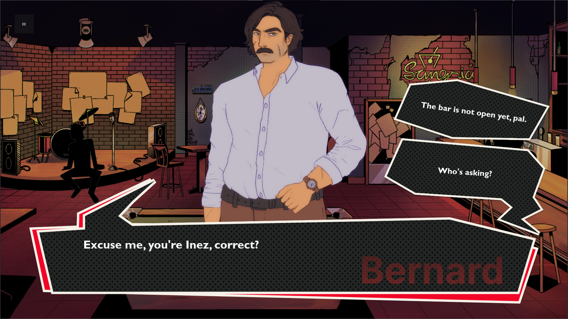 We were working on changing the song for the other locations during the moments in the bar, but haven’t been able to figure that out yet, so it’s still a work in progress.